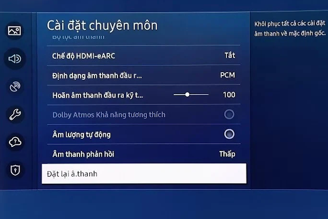 Để cài đặt lại âm thanh trên tivi Samsung, bạn có thể thực hiện các bước sau: